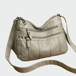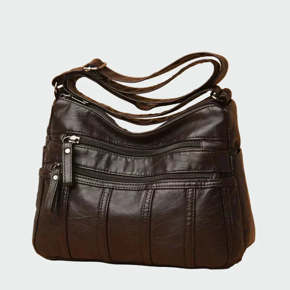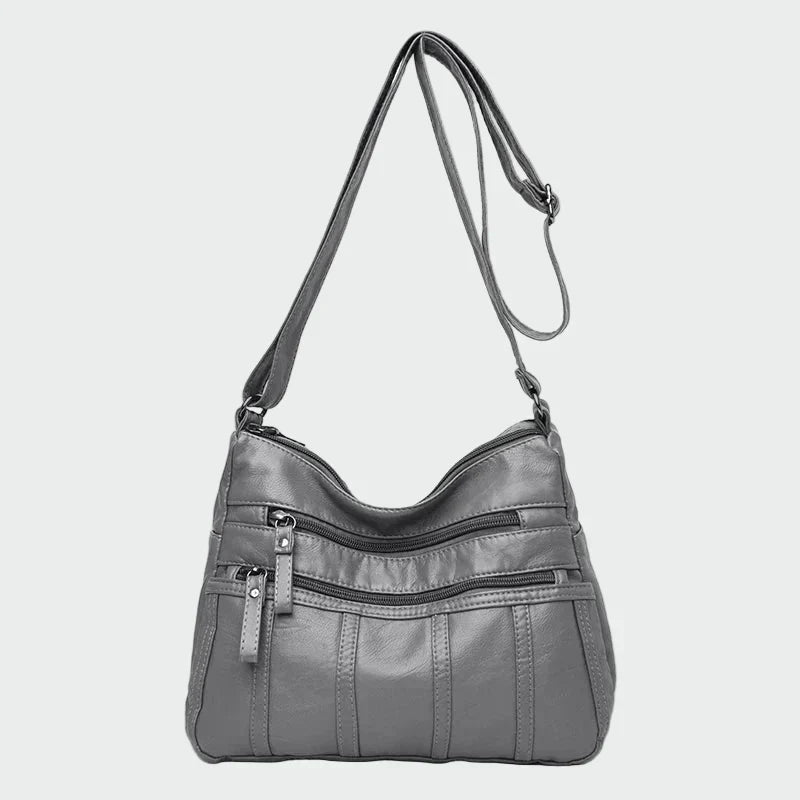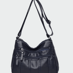 Praktikus válltáska fekete színben, puha textúrával és funkcionális dizájnnal. Több külső cipzáras zseb található rajta, amelyek könnyű rendszerezést és gyors hozzáférést biztosítanak a szükséges dolgokhoz. A állítható vállpánt kényelmes viseletet tesz lehetővé egész nap, így ideális választás a mindennapi informális megjelenéshez.