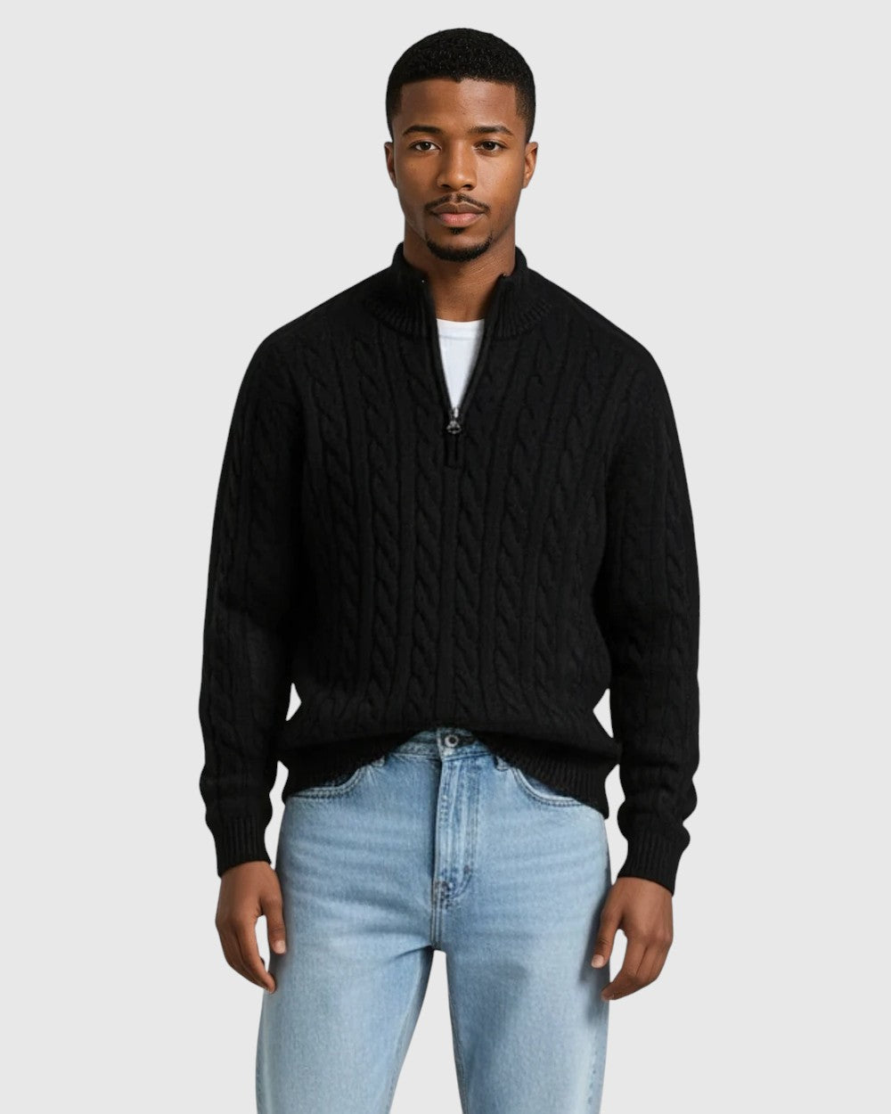 A Zipped pulóver férfiak számára készült, akik értékelik a kiváló kényelmet modern ízléssel. 100% prémium pamut anyagból készült, amely puhaságot, légáteresztő szövetet és elegáns sziluettet kínál - ideális rétegezéshez, stílusos hétköznapi outfitekhez vagy pihentető estékhez.