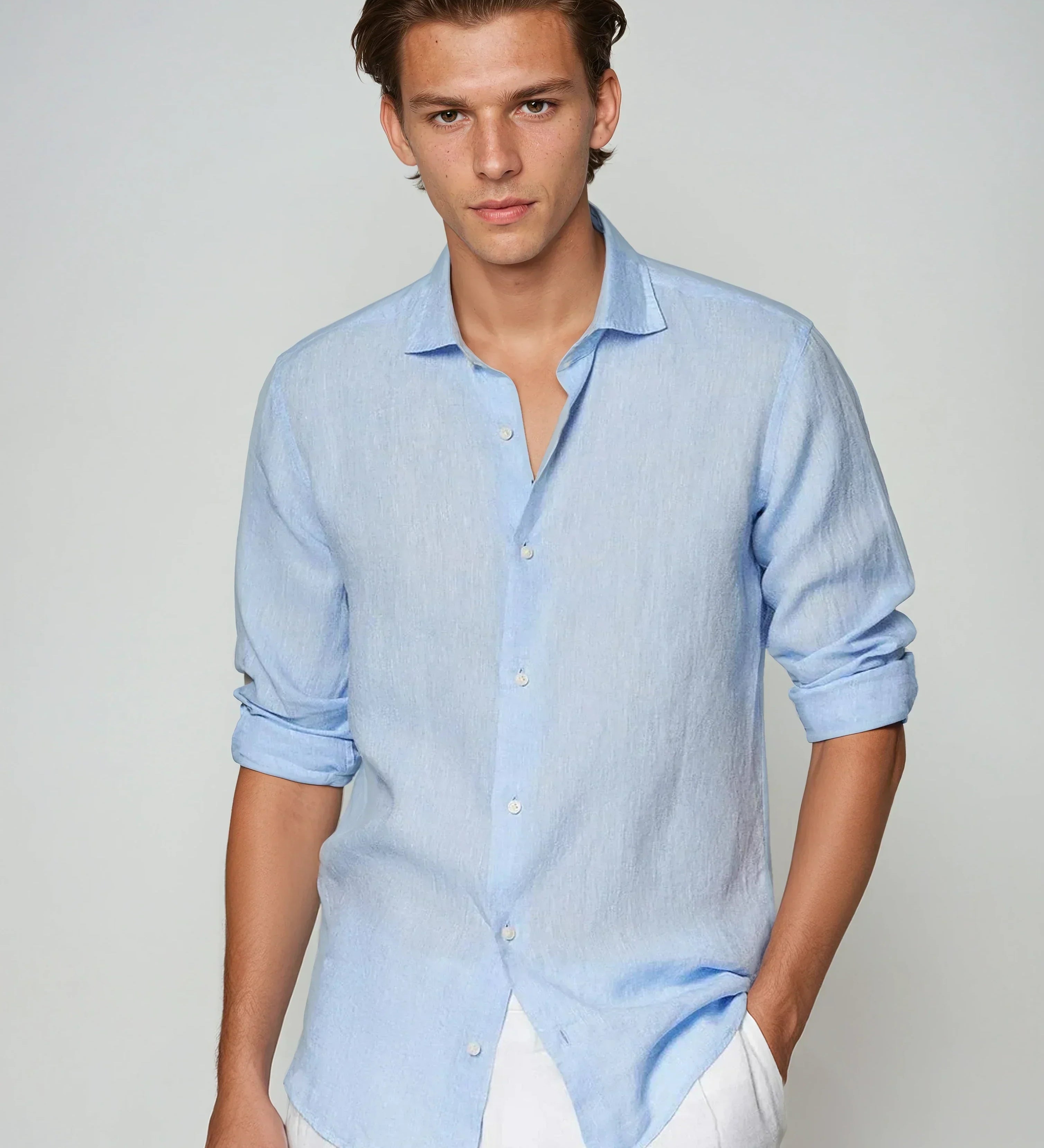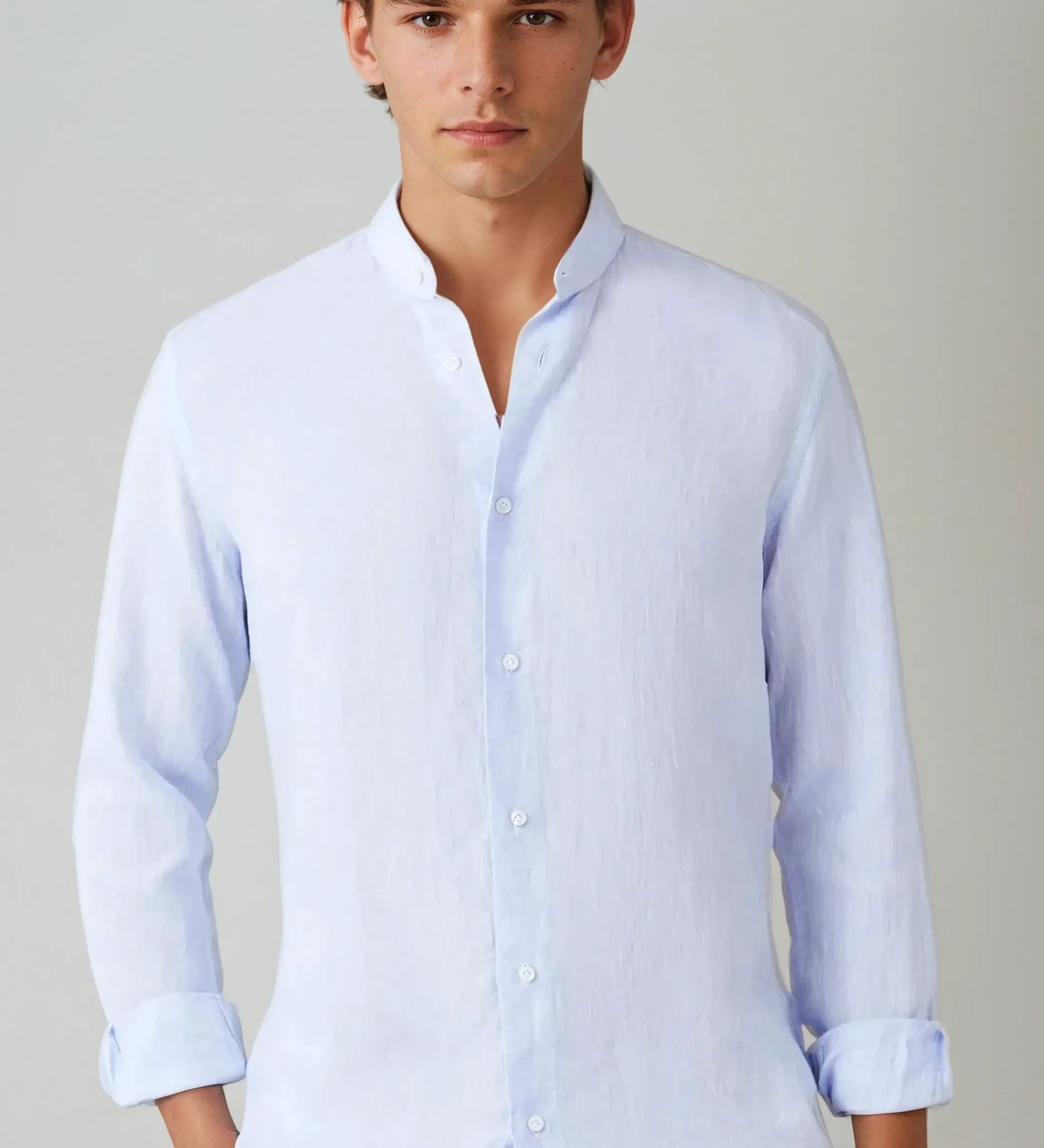Lilla | Világoskék lenvászon ing állógallérral