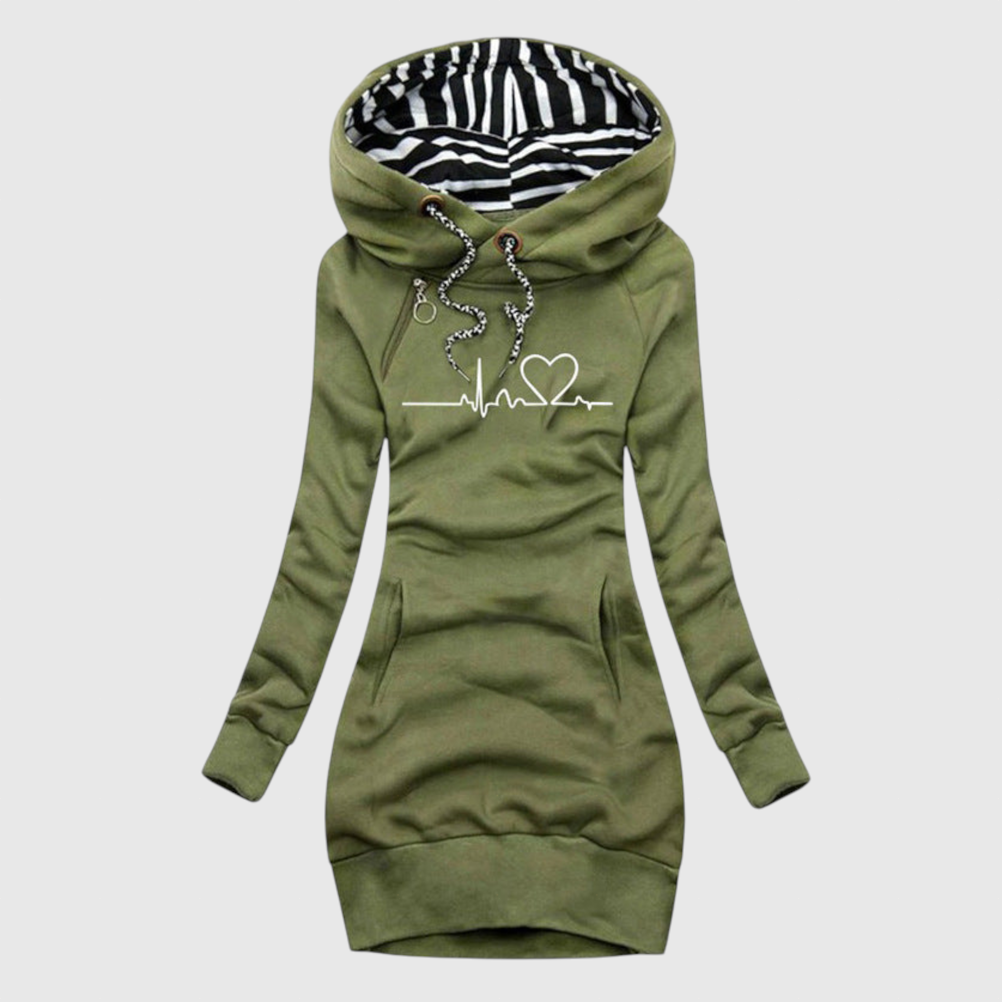 Lépj be a télbe a stílus és a kényelem tökéletes kombinációjával – a Kristina pulóverruhával! Modern szív mintájával ez a sikkes dizájn eleganciát ad a ruhatáradhoz. Akár bulizni mész, akár egy pihentető estét töltesz otthon, ez a sokoldalú pulóverruha az első választásod a melegség és a kifinomultság érdekében.
