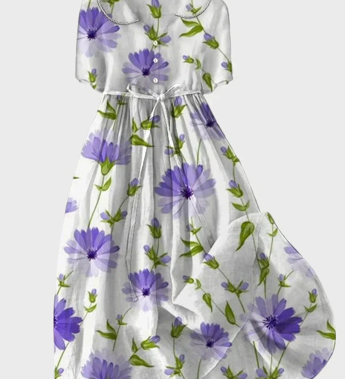 Izabella | Világos lila margarétás hosszú ruha