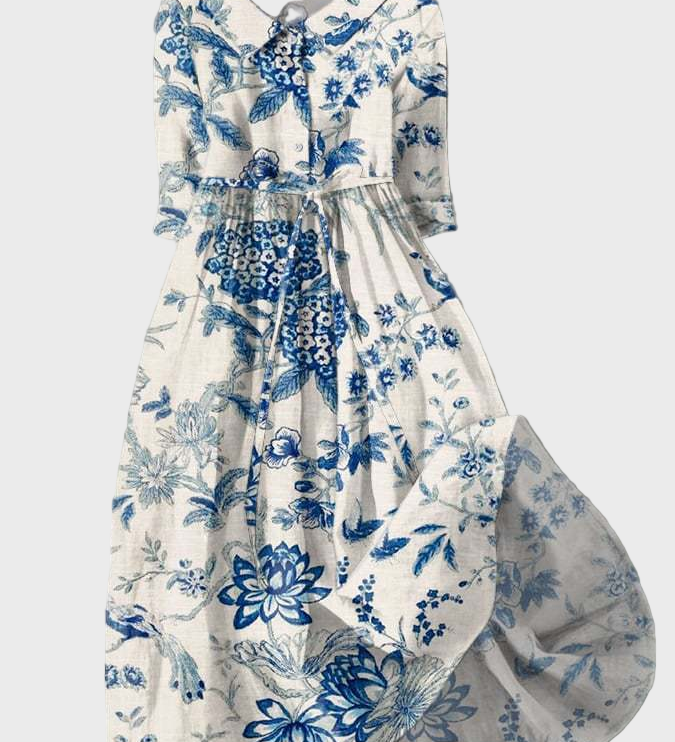 Petra | Hosszú ruha fehér kék mintával
