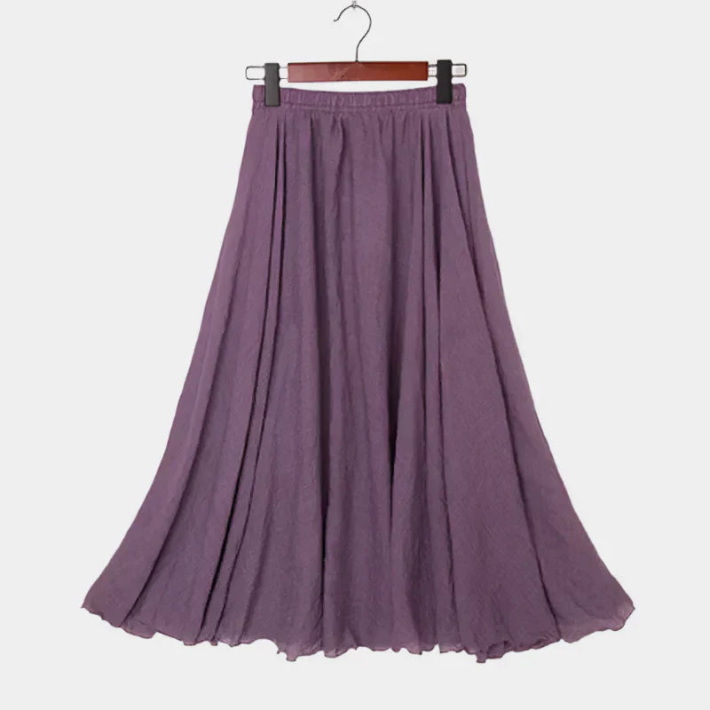 Frissítse nyári ruhatárát ezzel a hosszú, könnyű anyagú szoknyával. A széles szabás és a természetes mozgás légies megjelenést kölcsönöz, amely minden lépésnél lenyűgöz.