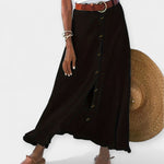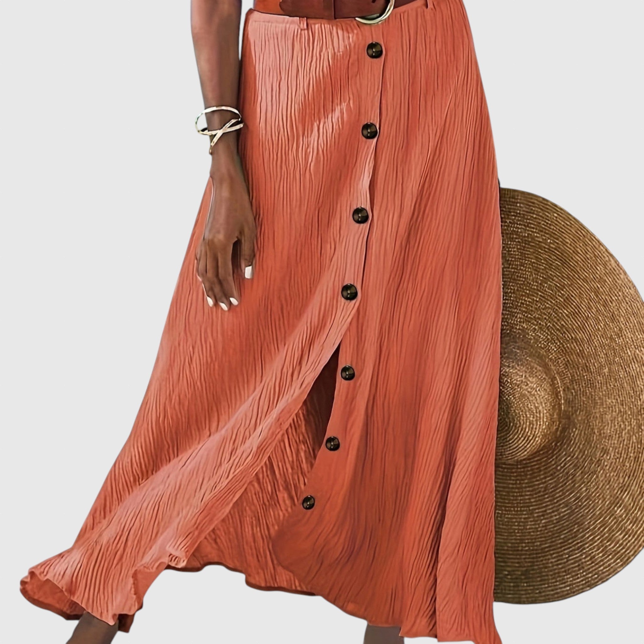 Könnyed és elegáns, ez a szoknya diszkrét nőiességet sugároz, és rugalmasságot kínál bármilyen alkalomra. Félátlátszó anyagával és elöl gombokkal reggeltől estig viselhető a megfelelő stílusban.